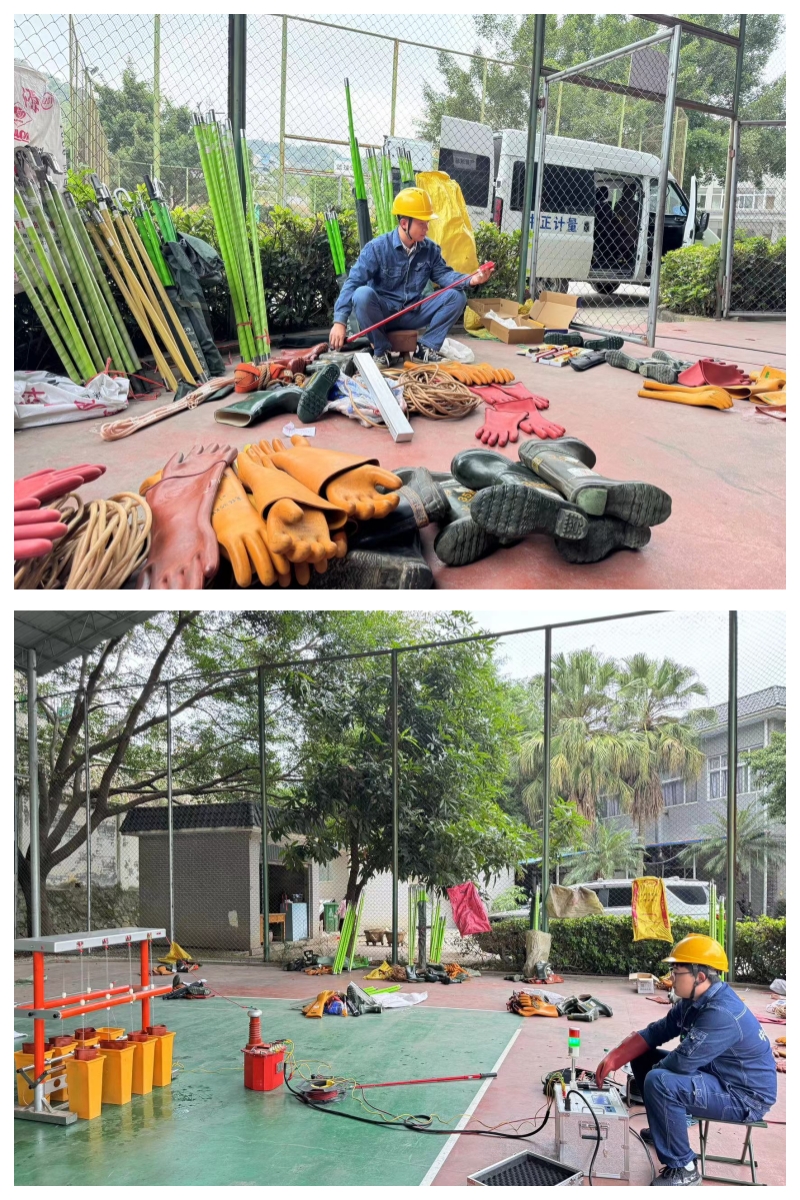 为保障一线作业人员人身安全,防范各类安全事故发生。11月12日,由专业检测机构,广西南宁风驰计量服务有限公司专业技术人员对安全工器具进行全面检测。